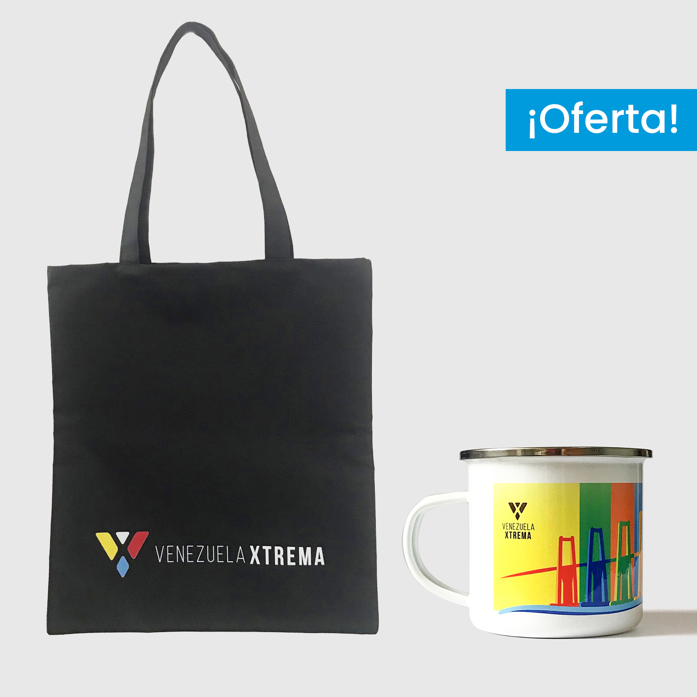 Por la compra de un tote bag + una taza de peltre con diseños similares tiene un 5% de descuento sobre el precio total e incluye bolsa de regalo de la tienda.