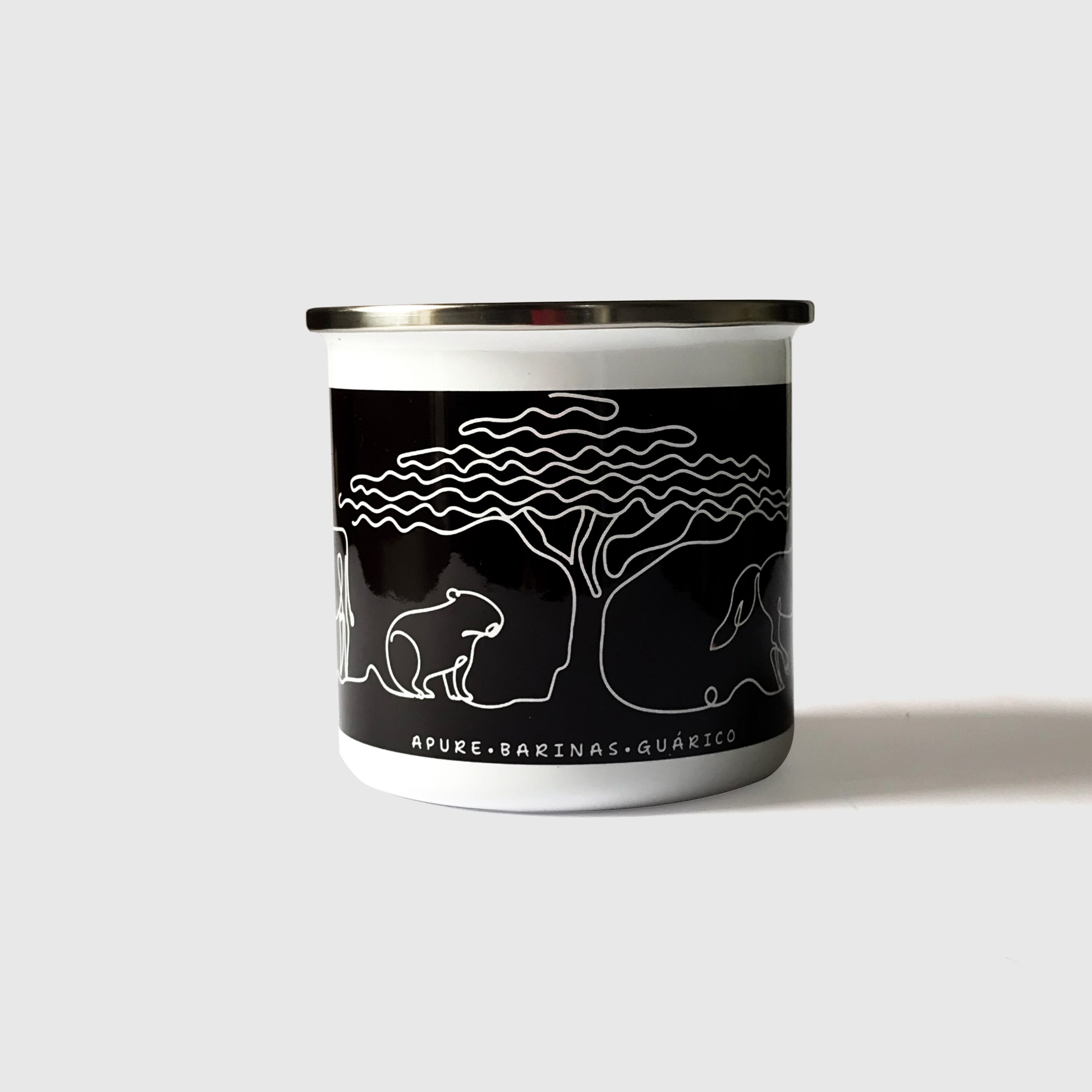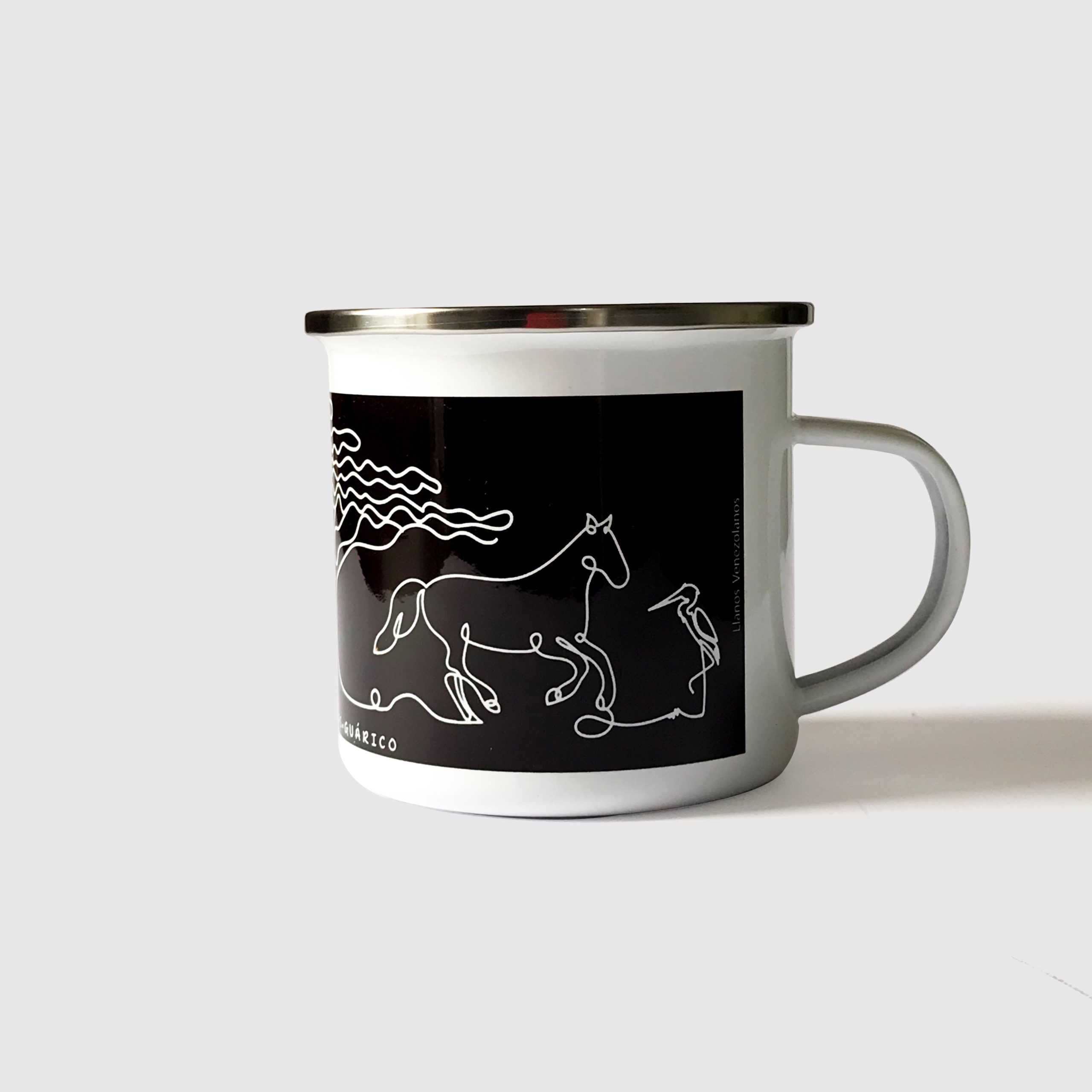 Este diseño parte de una cuerda para arrear ganado representada en una línea continua que le da forma a animales típicos de nuestros llanos como el caballo, el chigüire, la garza y una vaca pastando así como también el samán como símbolo de la vegetación de la zona.